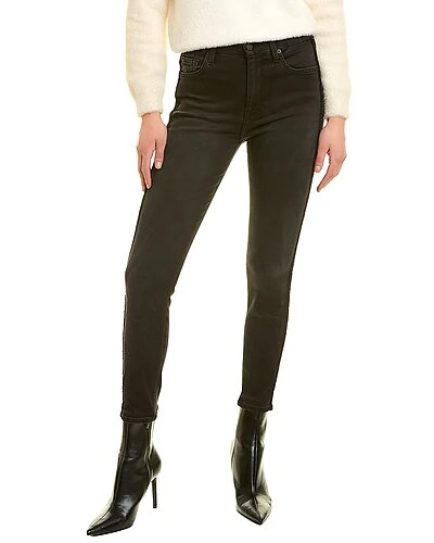 - High-Rise Ankle Skinny in black with belt loops, sequin side stripes, and classic five-pocket styling