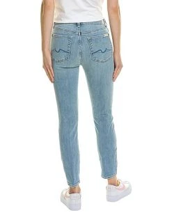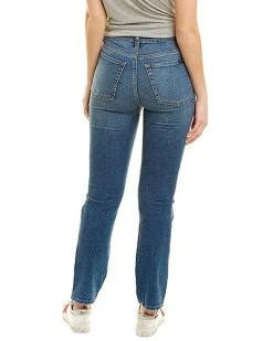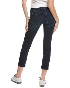 - High-Waist Crop Straight in blue breez with belt loops, whiskering and fading detailing, slashed knees, destroyed hem, and classic five-pocket styling