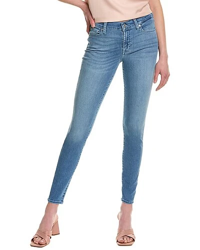 - High Waist Skinny in indigo static with fading, whiskering, belt loops, and classic five-pocket styling