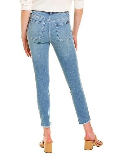 - High-Waist Ankle Skinny in Langley wave with belt loops, whiskering and fading details, frayed shark bite hem, and classic five-pocket styling