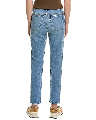 - Peggi Straight Ankle in figleaf with fading, whiskering, belt loops, distressed pant legs, and classic five-pocket styling