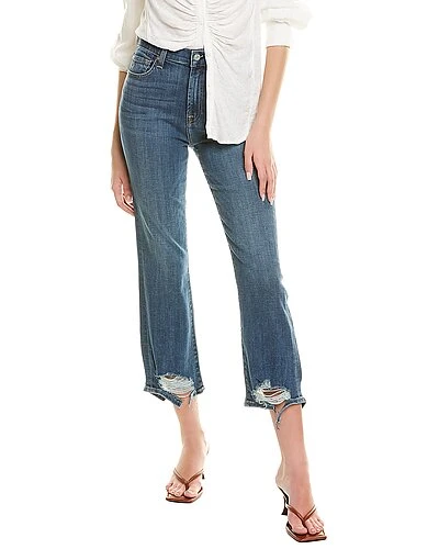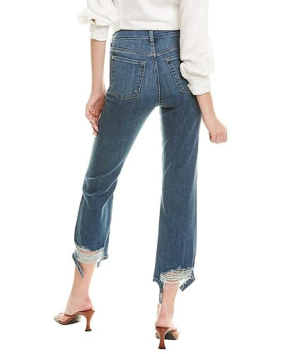 - High-Waist Slim Kick in vanity with destroyed hem, whiskering and fading details, belt loops, and classic five-pocket styling