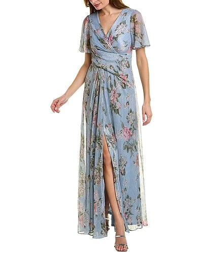 - Design details: surplice bodice, flutter sleeves