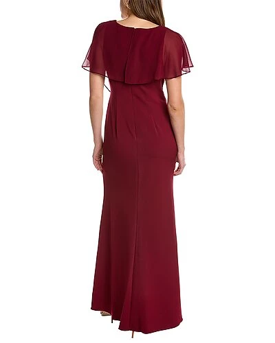 - Design details: V-neck, sheer ruffled trim, and vented front skirt