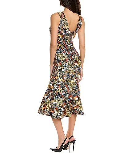 - Gianna Midi Dress in yellow multicolor with mermaid hem