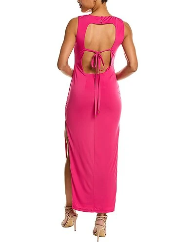 - Violet Maxi Dress in hot pink with open back, left high leg slits, and tie back