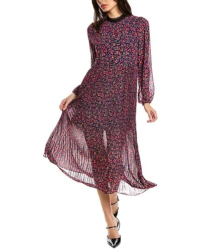 - Design details: lace mock neck, blouson sleeves, elasticized cuffs, and pleated skirt