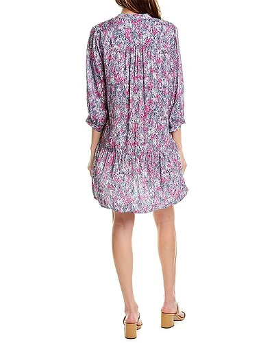 - Design details: mandarin collar, 3/4-length sleeves, and shirred hem