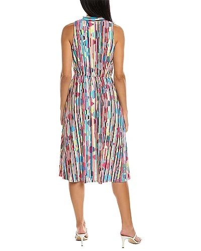 - Jenna Mini Dress in pink pansy combo with split neckline, elasticized waist and dual side seam pockets