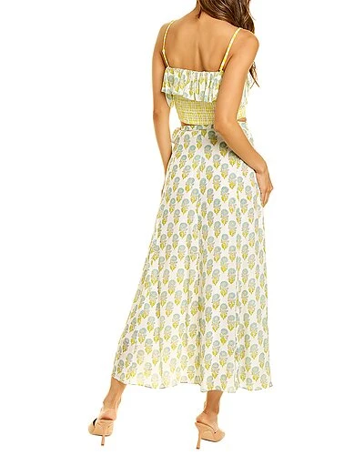 - Design details: adjustable straps, smocked design, and ruffle accents