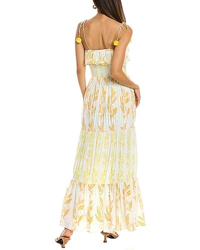 - Design details: self-tie shoulder straps with pompoms, smocked detailing and ruffle trim