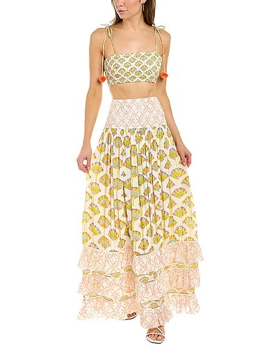 - Design details: smocked self-tie top and ruffle-hem slip-on skirt