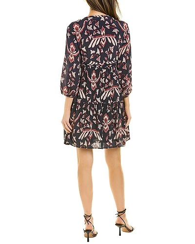 - Pleated Mini Dress in bleu nuit with V-neck, pleated detailing, button cuffs and flounce hem