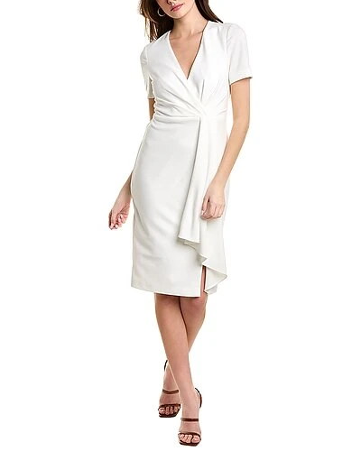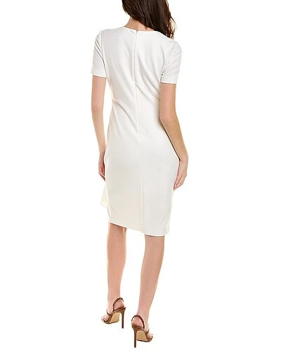 - Pleated Sheath Dress in light ivory with surplice bodice and draped panel at skirt