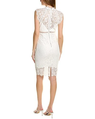 - Design details: lace design, sheer yoke and cap sleeves, ladder stitch trim, center slit at back hem