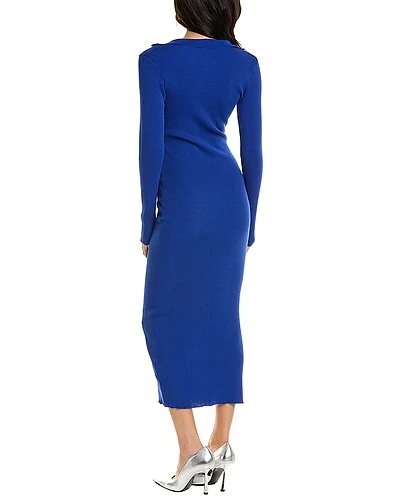- Design details: ribbed fabric, spread collar, V-neck, and keyhole front waist
