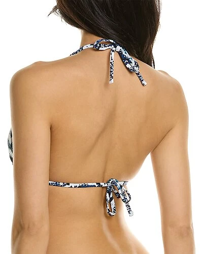 - Adjustable Triangle Bikini Top in black/blue with gold-tone hardware and removable soft cups