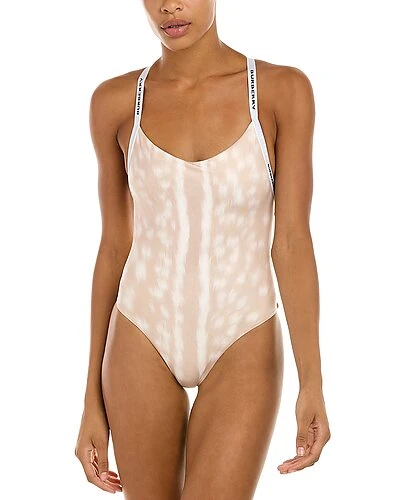 - Logo Strap One-Piece in soft fawn with crisscross back straps