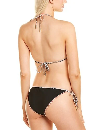 - Vintage Check Detail Triangle Bikini in black with triangle style top with built-in molded cups, vintage check trim, and matching string bikini bottom with self-tie hips