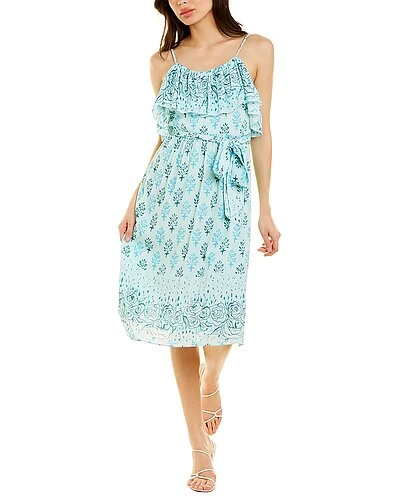 - Design details: ruffled bust, braided shoulder straps, elasticized waistband, and self-tie sash at waist