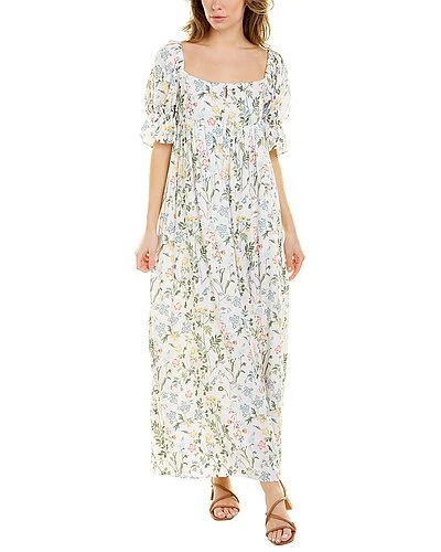- Design details: square neck, puff elbow-length sleeves, and smocked bust