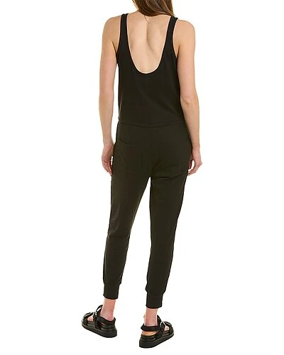 - Cozy Rib Jumpsuit in true black with scoop neck, elasticized drawstring waistband , and dual front angled pockets