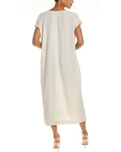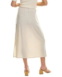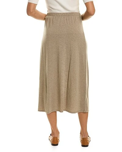 - Straight Skirt in tarragon with elasticized waistband and slit at left hem