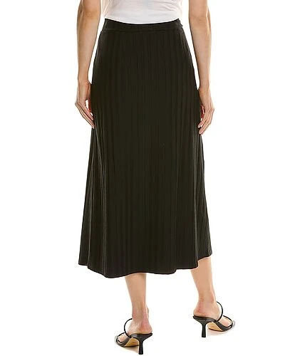 - Wide Stretch Rib A-Line Skirt in black with 3in wide waistband and .5in elastic