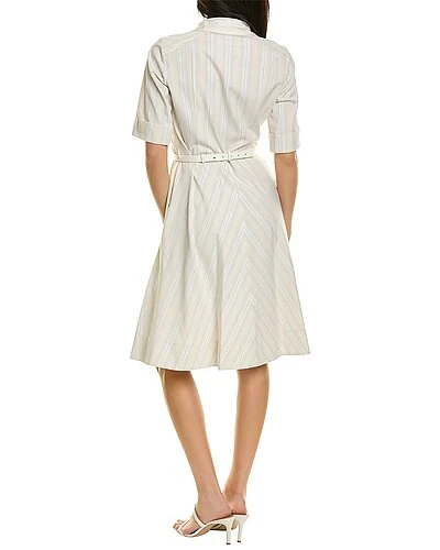 - Candence Shirtdress in multicolor with spread collar, elbow-length sleeves with notched roll-up cuffs, and dual side on-seam pockets