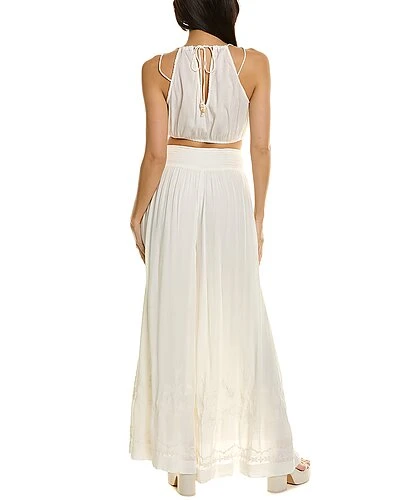 - 2pc Angie Top & Pant Set in ivory with smocked surplice crop top and shirred wide leg pant