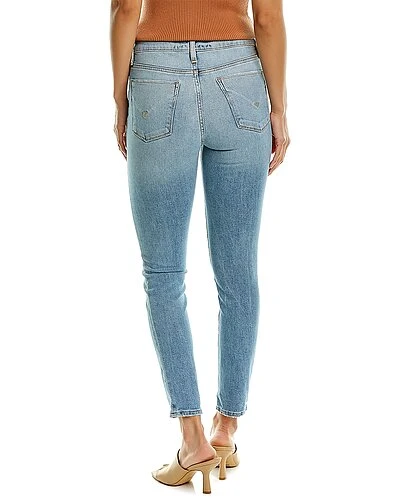 - Barbara High-Rise Super Skinny Ankle in shooting star with belt loops, whiskering and fading details, slight distressed right knee, and classic five-pocket styling