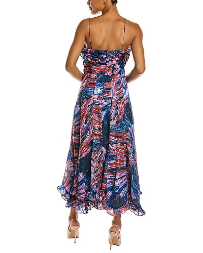 - Design details: burnout design, tiered ruffle neckline, and ruffle hem