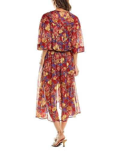 - Maggy Midi Dress in burnt henna with shirring details, batwing sleeves and elasticized waist