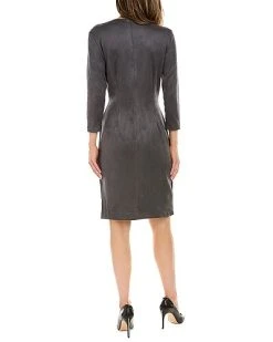 - Aubina Catalina Cloth Shift Dress in charcoal and blue with 3/4-length sleeves and side seam pockets