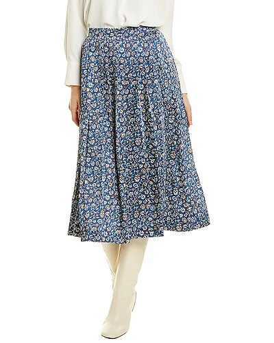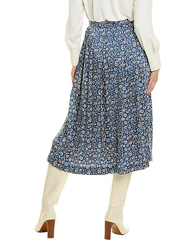- Calluna Skirt in navy & aqua with pleated design and dual side on-seam pockets