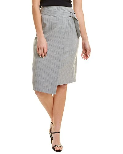 - Cambria Pencil Skirt in grey with layered front and belted waist