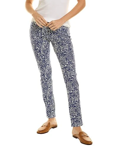 - Lexi Jean in navy and white garden block with belt loops and classic five-pocket styling