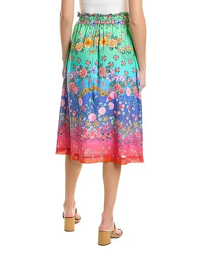 - Rainbow Field Paperbag Skirt in multicolor with elasticized waist, two front pockets, and button front