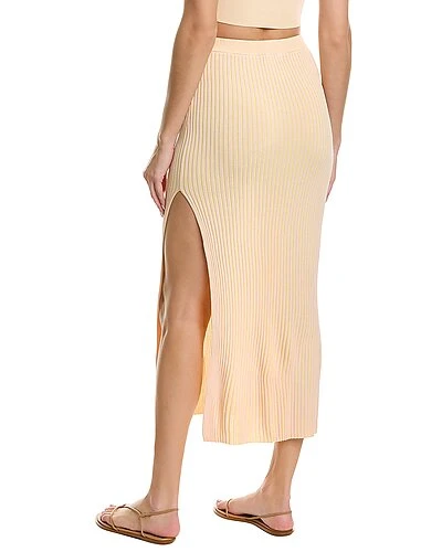 - Sundown Skirt in rose quartz and mellow yellow with ribbed design, slit at hem, and elastic waist