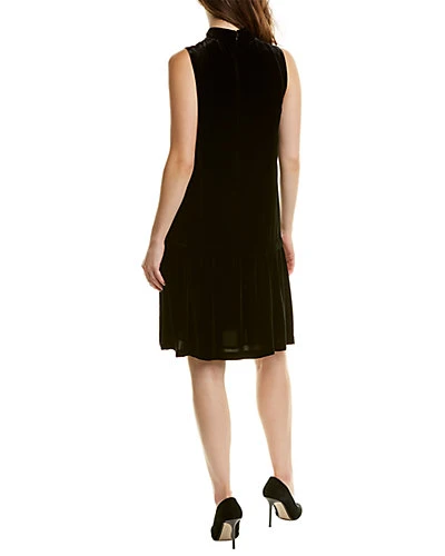 - Abbie Silk-Blend Shift Dress in black with velvet design, kerchief neck, and shirred hem