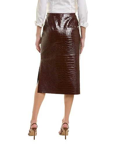 - Birdie Leather Skirt in claret with croc-embossed design and vented back hem