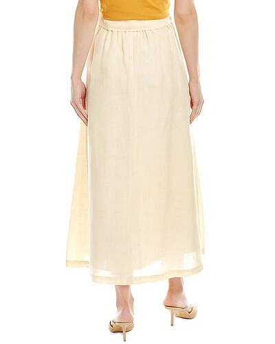 - Reina Linen Midi Skirt in pirouline mélange with self-tie sash at waist