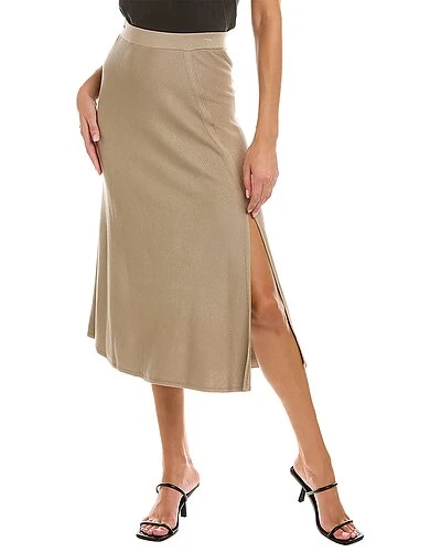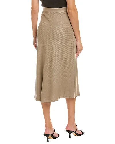 - Ribbed Skirt in smoked taupe with elasticized waistband and asymmetric hem