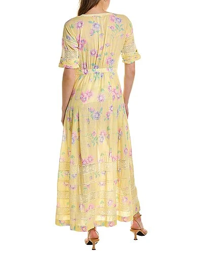 - Edie Midi Dress in bright azalea with square neckline, pintuck detailing, lace trim and ruched cuffs