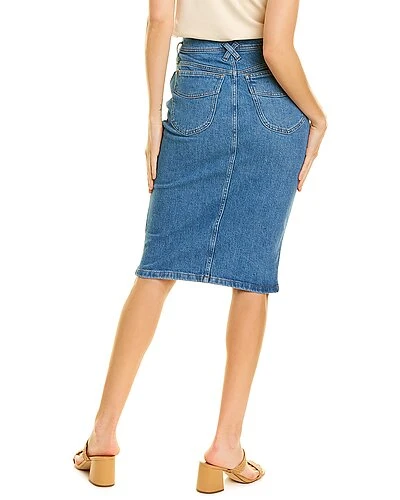 - Denim High-Waist Midi Skirt in Holton wash with belt loops and classic five-pocket styling