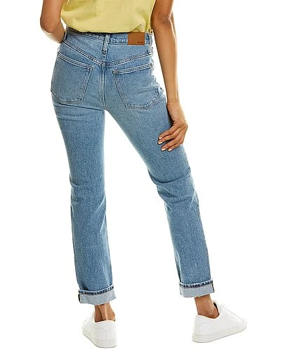 - High-Rise Slim Boy in bilston wash with belt loops, whiskering and fading details, distressed detailing, and classic five-pocket styling