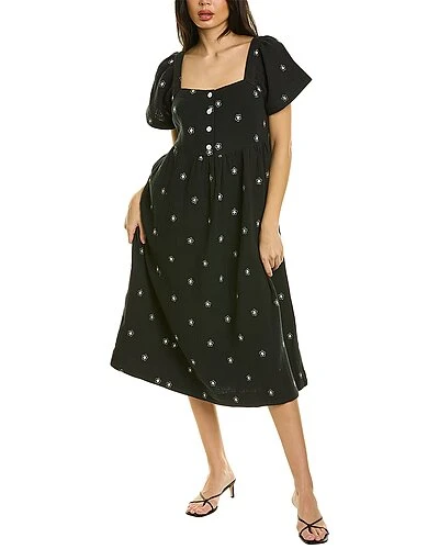 - Melanie Easy Dress in true black with square neckline and pintucked waist