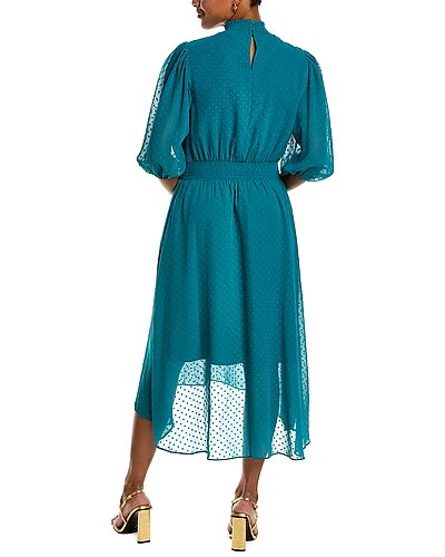 - Design details: Swiss dot design, smocked collar, 3/4-length sleeves, smocked waist, and high-low hem