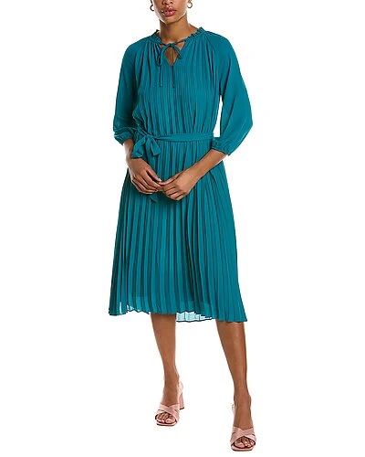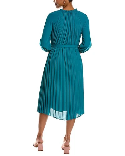 - Design details: pleated design, ruffled mock neck, 3/4-length sleeves, elasticized cuffs, and self-tie sash at waist
