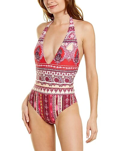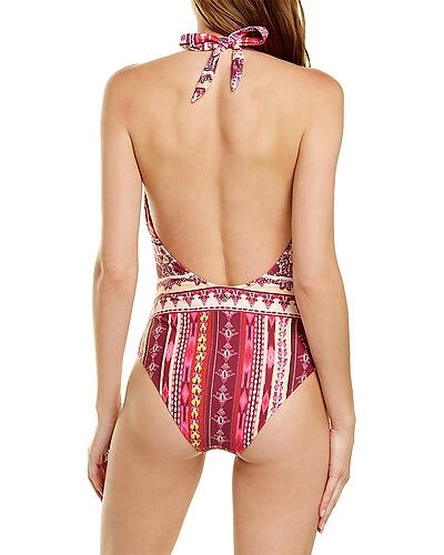 - Design details: self-tie halter neck, removable soft cups, plunging neckline, and open back